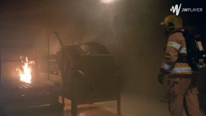 Re-entry techniques from above using two hoses during a fire of liquid fuels