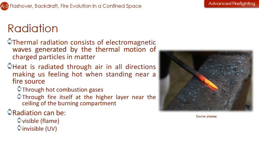Flashover, Backdraft, Fire evolution in a confined space - Heat transfer